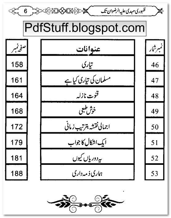 Contents/Sample Pages of the Urdu book "Zahoor-e-Mehdi Tak" by Abu Abdullah Asif Majeed Naqshbandi