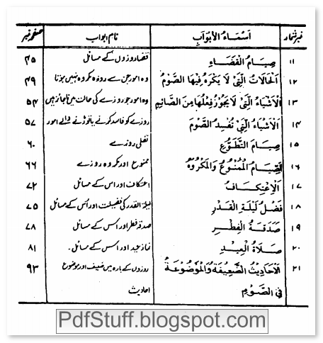 Contents/Sample Pages of the Urdu Book "Rauzon Kay Masail" by Mohammad Iqbal Kilani