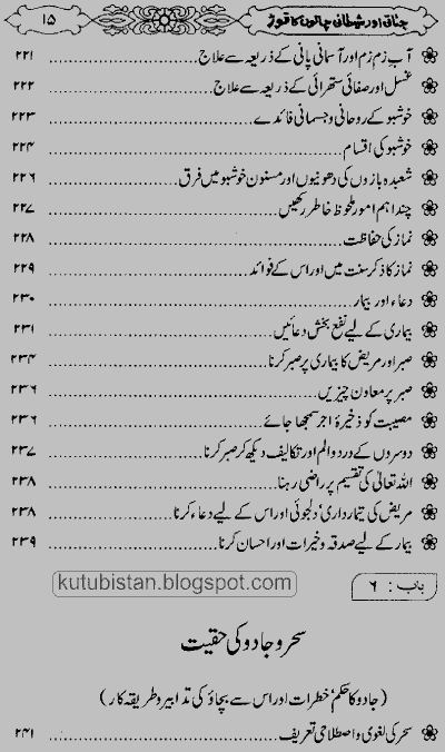 Jinnati Aur Shaitani Chalon Ka Tor Urdu book is all about magic, Satans and Jinns (Demons). According to Islamic point of view, the magic is actually done by the Jinns and Satans. The authors have written many secrets about the black activities of Jinn and Satans against the Human. Such a harmful activities are actually the magic, or (Jadu in Urdu). The book is compiled in the light of Holy Qur'an and Hadith. This is a detailed Urdu book about protection from Jinns and Satans in Urdu language. The book is a must read Urdu book for every Muslim who can read and Understand Urdu language.